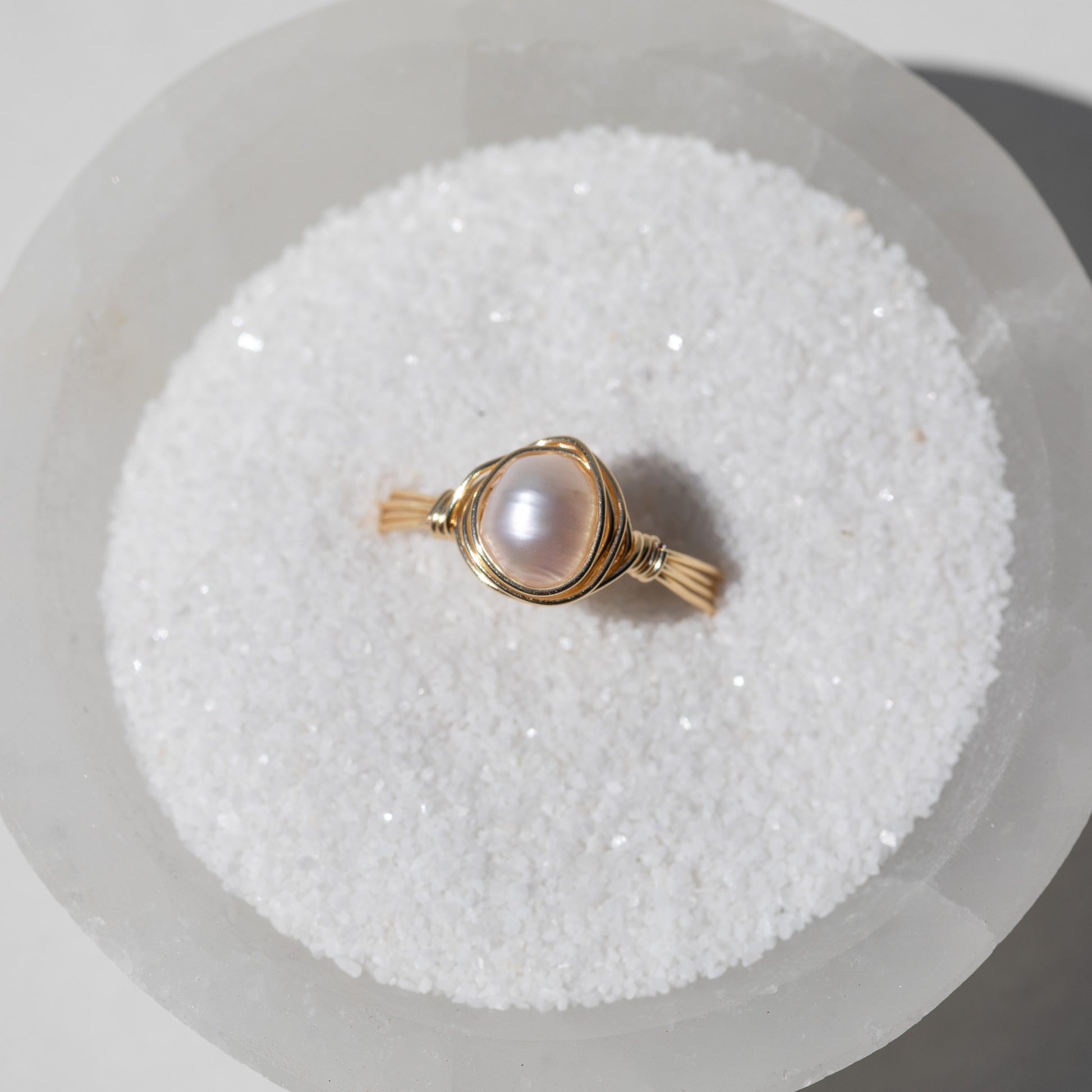 Description: Delicately crafted, this ring features a lustrous pearl elegantly captured in wire, adding a touch of coastal magic to your everyday look. With its subtle beauty and timeless design, this ring is a perfect embodiment of the sea's natural allure. Wear a piece of the ocean's serenity on your finger and let your love for the seaside shine through.