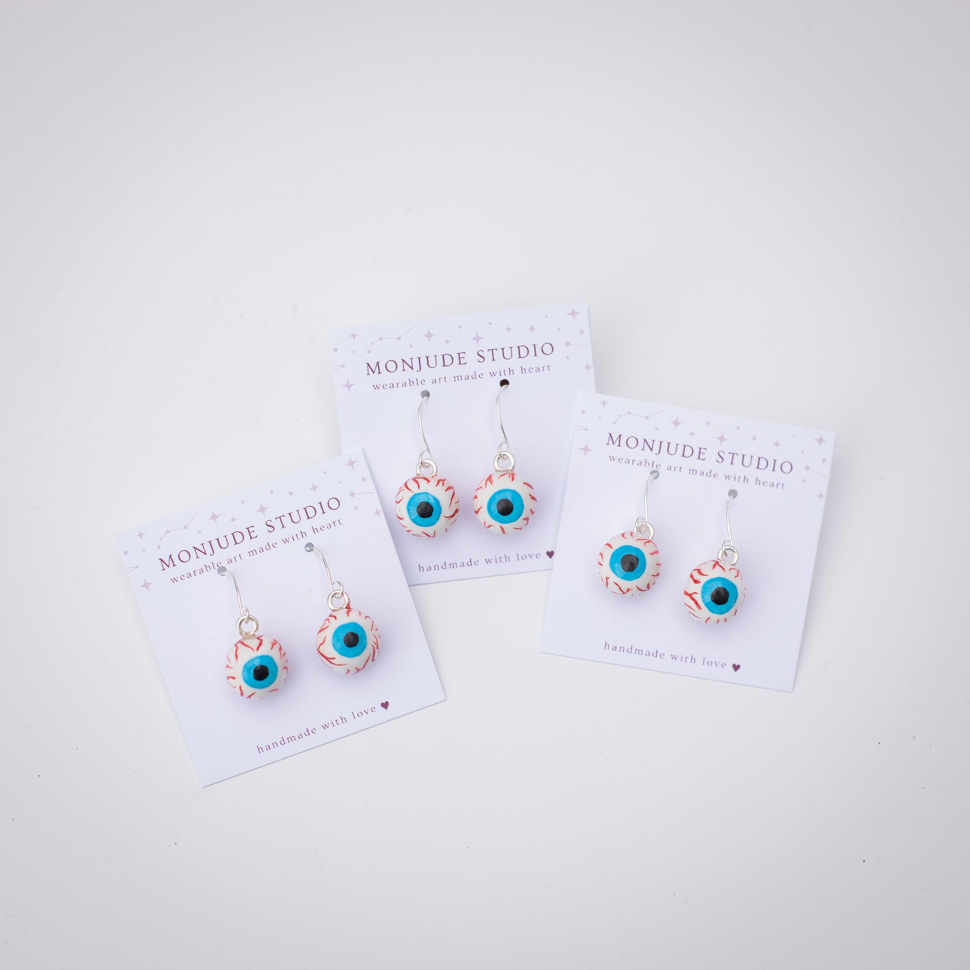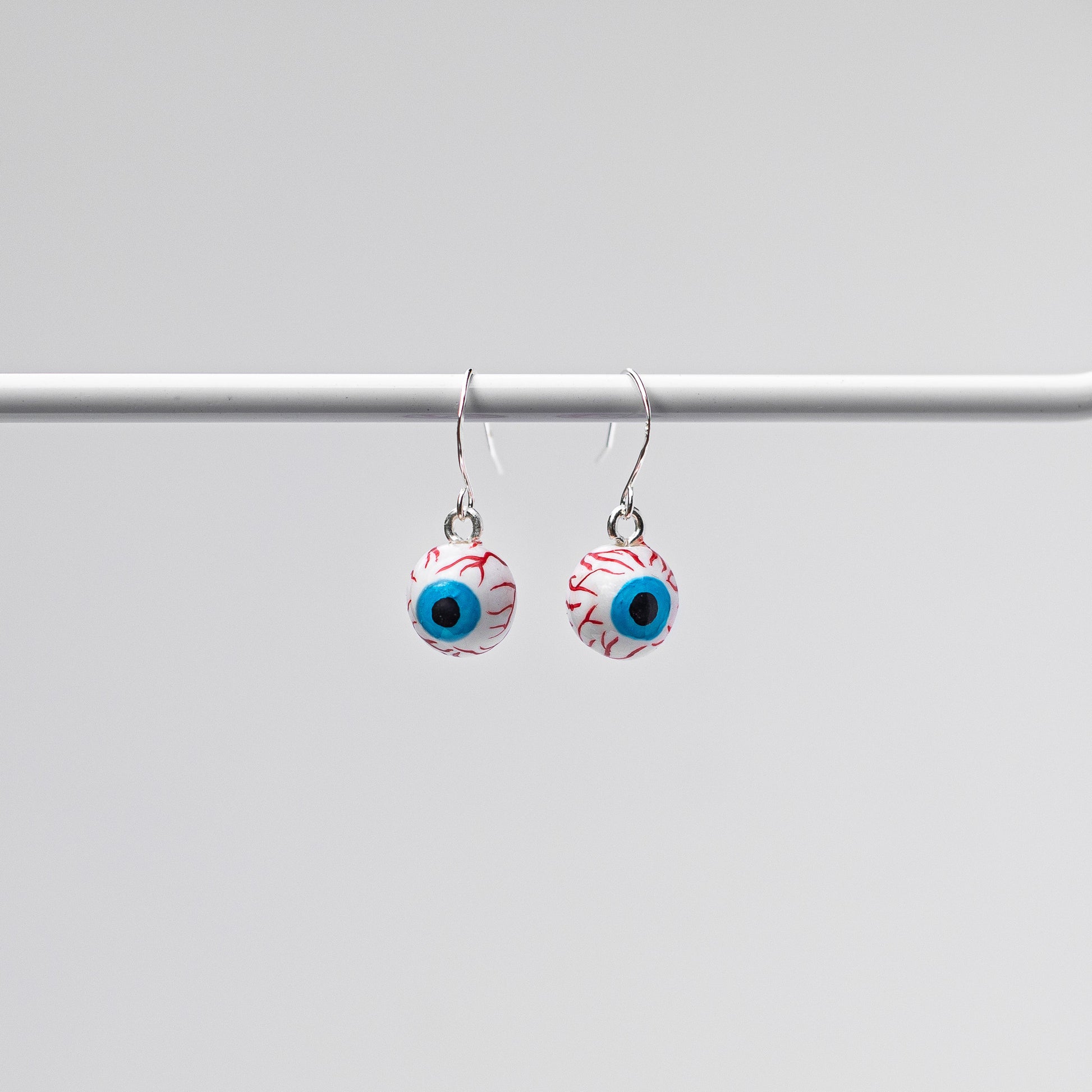 Description: These bloodshot eye earrings are a great creepy style to rock this Halloween, or all the time if you're a year-round Spooky Soul!