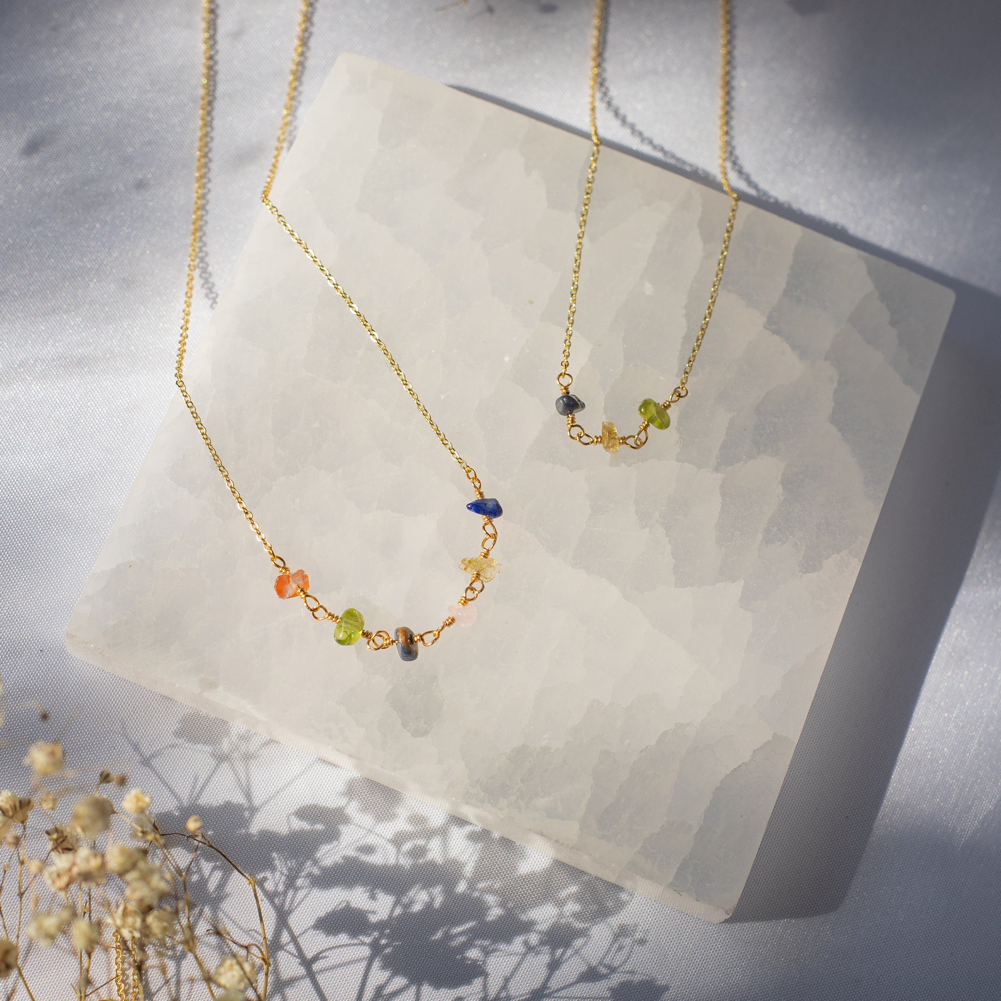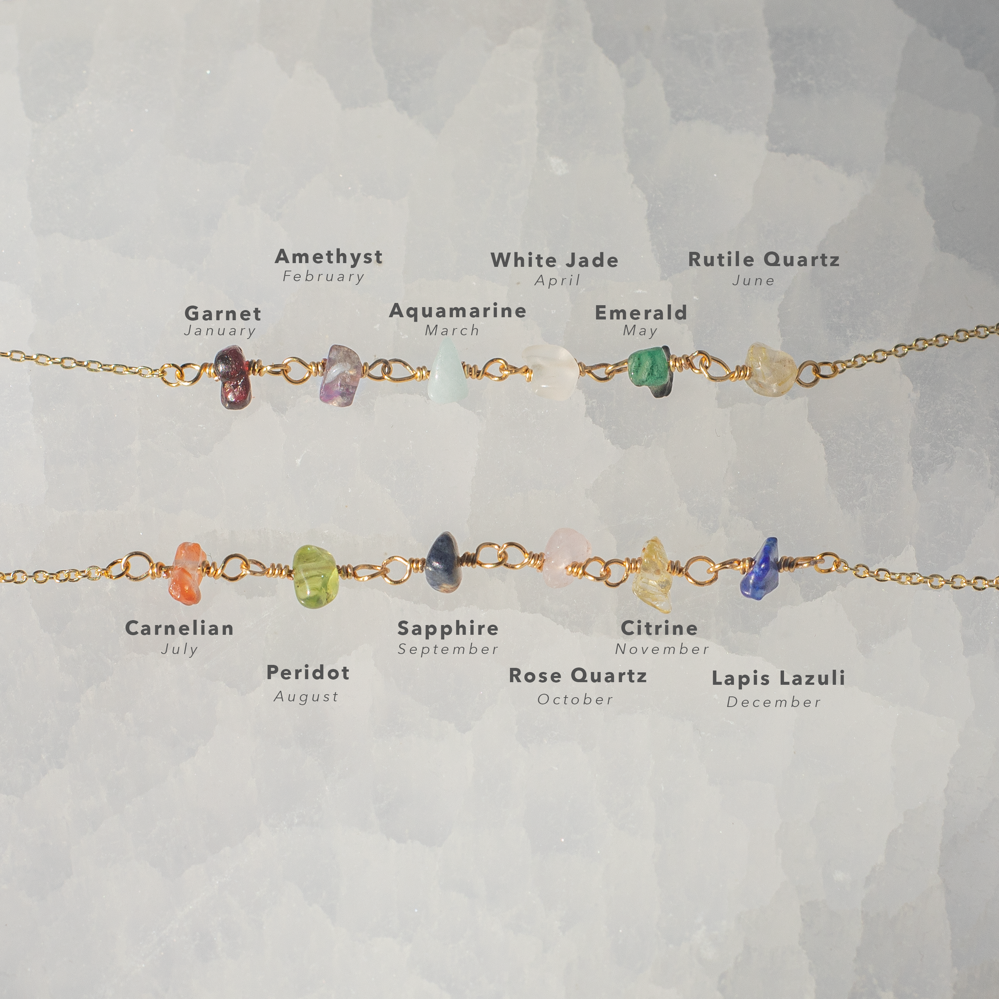 *Interested in a different chain length/more than 6 birthstones? Email monica@monjudestudio.com with your request and we'll create a special order for you! (Important Note: Extra materials may add additional costs not reflected in this listing. More information on the total cost will be shared in our email response to your special request.)