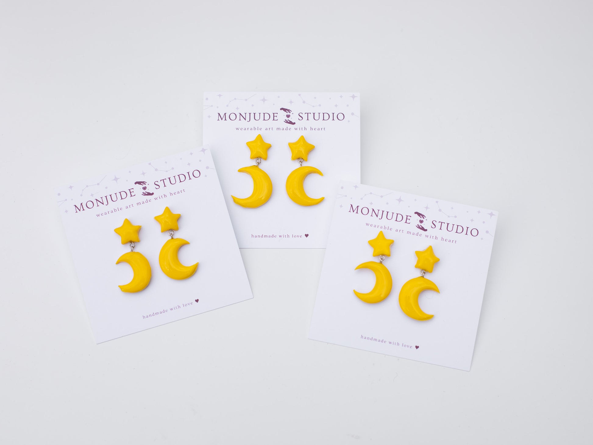 Description: Inspired by the animated series Sailor Moon, these statement earrings are as fun and funky as Usagi herself! These earrings are great for harnessing your inner moon magic power.