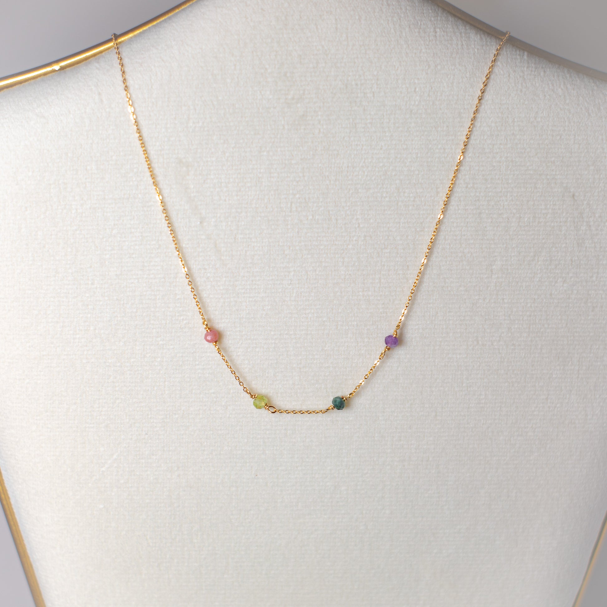 Description: This ready-made version of our Custom Family Birthstone Necklace features pre-selected birthstone combinations thoughtfully designed for their beautiful color harmony. Perfect for anyone who loves the look of our custom piece but prefers a ready-to-ship option. Each necklace includes several sparkling birthstones arranged in a balanced, elegant design; making it a beautiful gift for mothers, loved ones, or yourself.