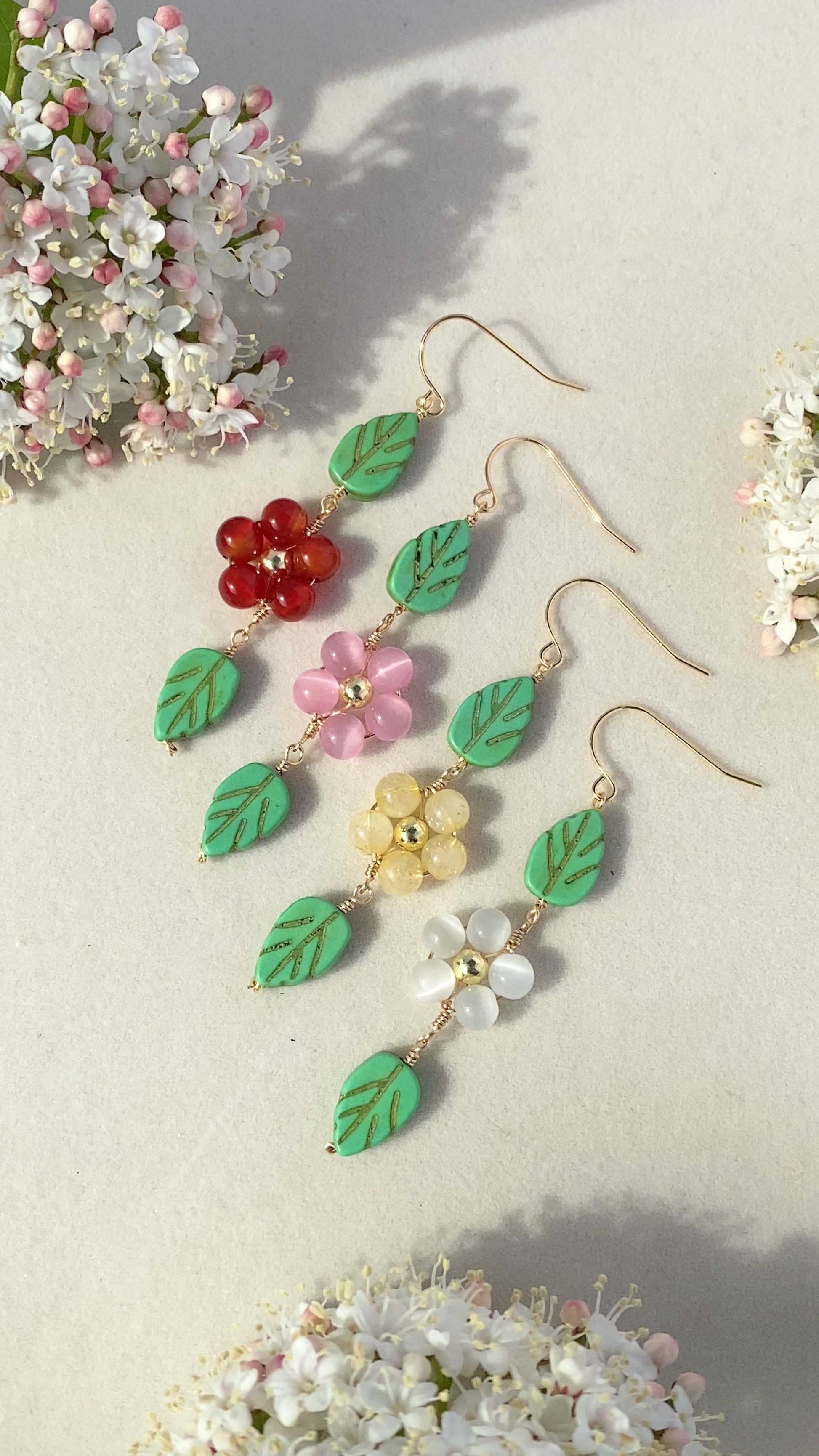Description: Spring Blossoms are the perfect accessory to help you tap into Spring's rejuvenating energy! Each blossom features five round gemstones to assist in further connecting you to Mother Nature's flow. Choose between carnelian, citrine, pink cat's eye, and white cat's eye.