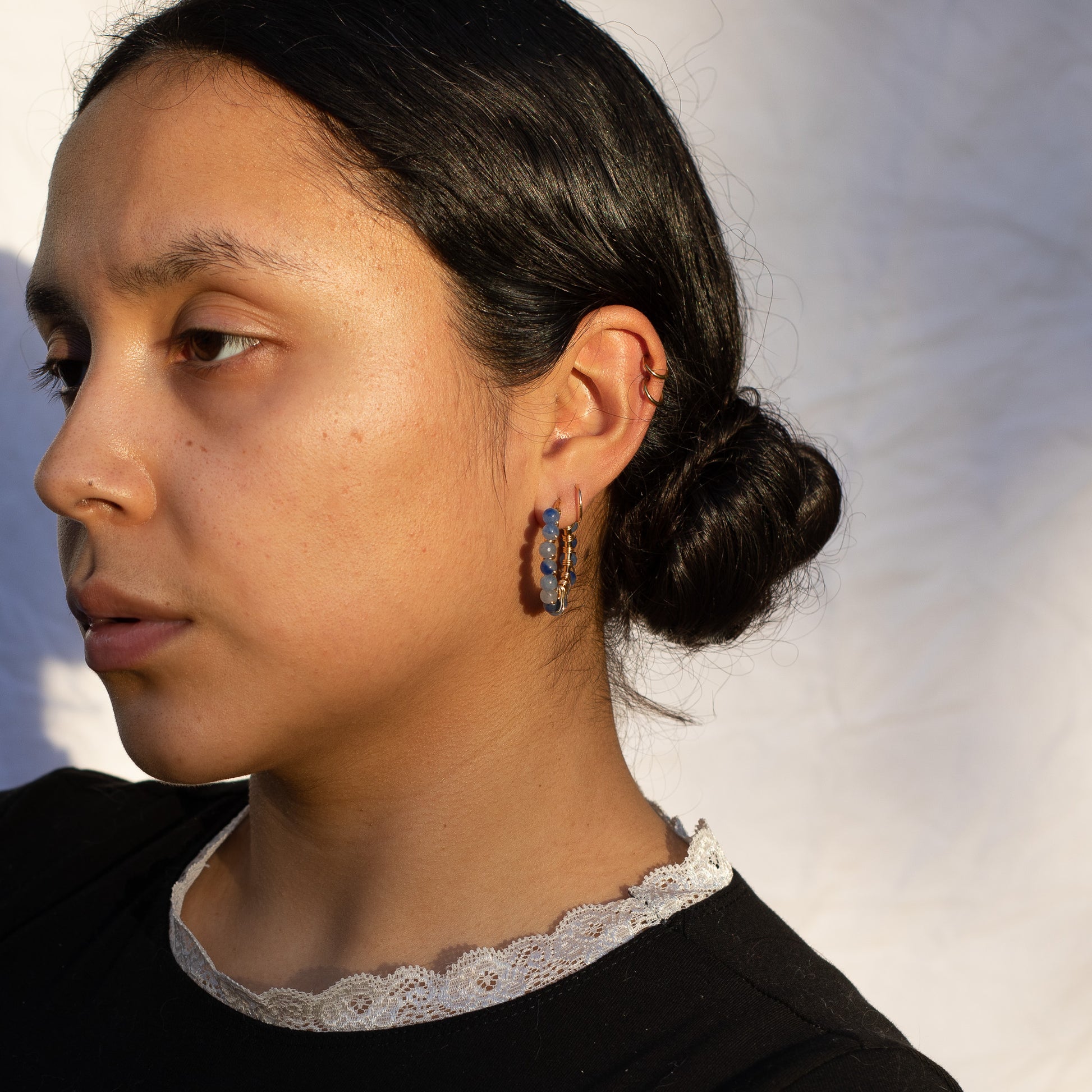 Materials: Handmade using genuine gemstones, non-tarnishing silver-plated wire, and stainless steel hoops.